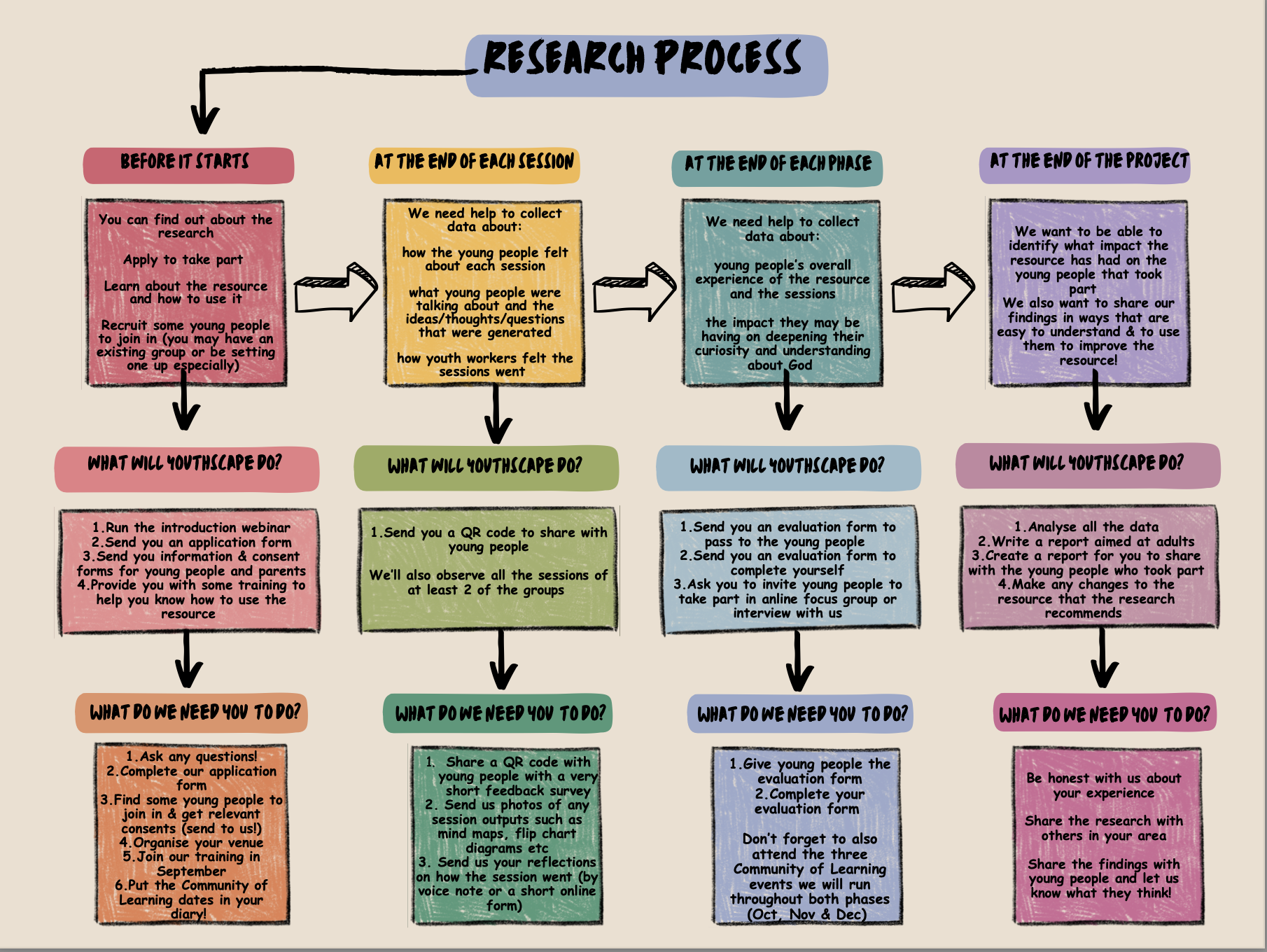 At present, you are the only people to have access to the reading guide! Before we make the resource available to all, we are interested to see how it lands with young people, understand your experiences as facilitators, and, ultimately, evaluate how well it achieves its aims. We are not looking at your performance as facilitators in relation to either your delivery or the spiritual journey of the young people. This is where you find all the information you need for this research journey!