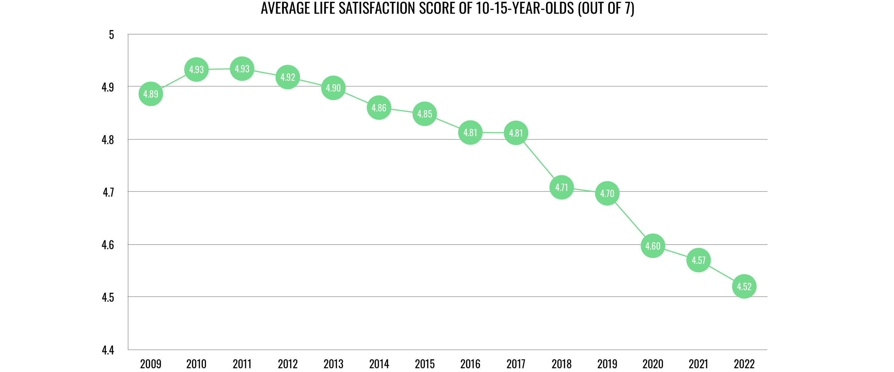 It's really disheartening to see how young people's happiness has taken a hit lately. In 2010, only 3% of young people in this survey said they were unhappy with their life, scoring below the midpoint. But fast forward to 2022, and that number has quadrupled to 12.5%. That's not a great trend, to say the least.